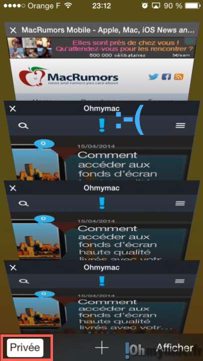 Et voilà, toutes les fenêtres ouvertes se sont fermées d’un seul coup. Il reste une chose à faire: si la navigation privée était désactivée dans votre Safari Mobile avant de faire notre manipulation, vous l’avez activé maintenant. Donc si vous voulez revenir à l’état initial, tapotez à nouveau sur Privée, pour basculer en mode navigation normale. Pr mémo: lorsque « Privée » est entouré de blanc, la navigation privée est activée, votre confidentialité sur le net est augmentée et votre navigation n’est pas enregistrée dans l’historique. Lorsque « Privée » n’est pas entouré de blanc, vous naviguez sur internet normalement.