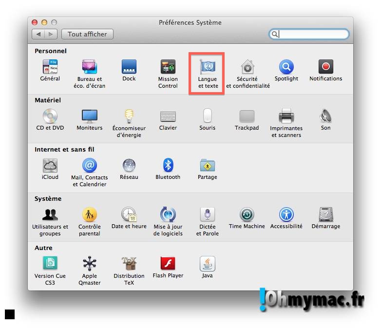 Dans les Préfèrences Système repérez les options de Langue et Texte.